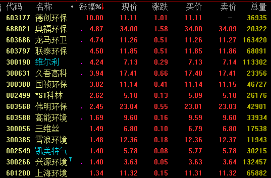 环保板块20日盘中震荡上扬,截至发稿,德创环保涨停,奥福环保、龙马环卫、联泰环保、维尔利等涨幅超4%,久吾高科、国祯环保涨幅超3%。